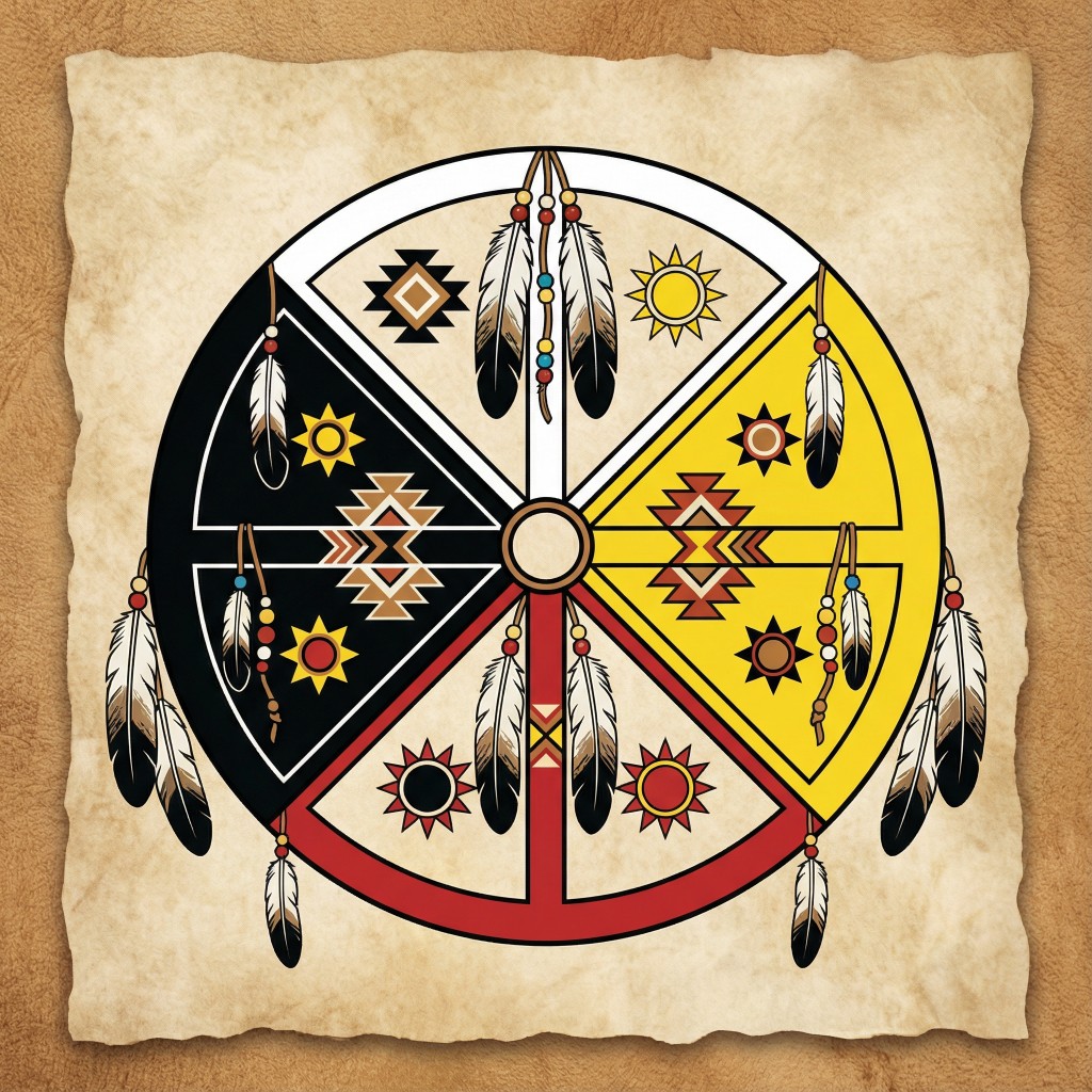 La Roue de Médecine est un cercle sacré représentant l’harmonie, l’équilibre et l’unité. Depuis des siècles, elle accompagne celles et ceux qui souhaitent comprendre leurs dons, éclairer leur chemin, guérir leurs blessures et renouer avec leur mission d’âme. Chaque direction porte une médecine, un enseignement, une énergie :