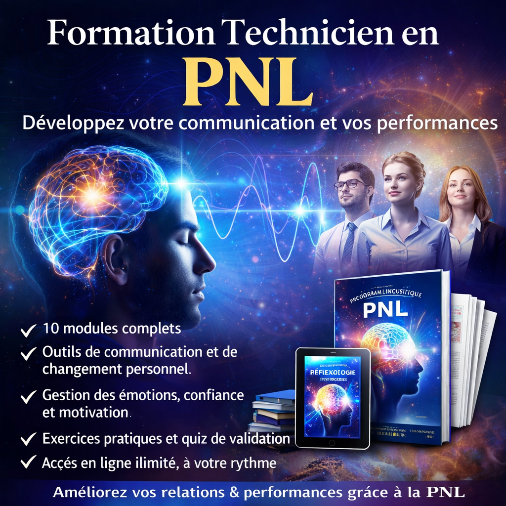 La Programmation Neuro-Linguistique (PNL) regroupe un ensemble de pratiques issues de la psychologie et de la communication. Née dans les années 1970 à partir de l’observation de grands thérapeutes, la PNL est une approche de développement personnel qui vise à améliorer la communication, les comportements et les stratégies mentales afin de mieux réussir dans ses projets.